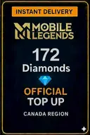 Mobile Legends - 172 Diamonds Top-Up (Canada) monety/diamenty to oficjalna waluta wirtualna używana w aplikacji do wysyłania prezentów, odblokowywania członkostwa VIP, kupowania efektów specjalnych i ekskluzywnej zawartości.